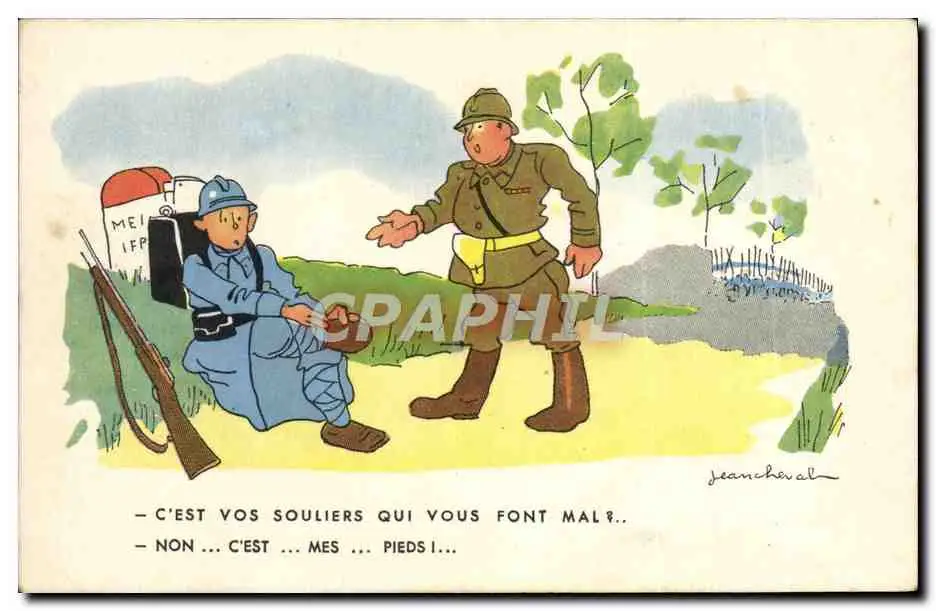 Cartes postales Humour Jean Cheval C'est vos souliers Soldat Militaria