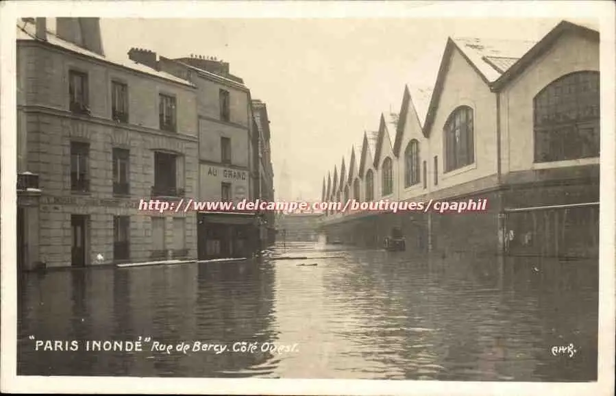 Cartes postales Inondations paris inonde Rued e Bercy Cote Ouest