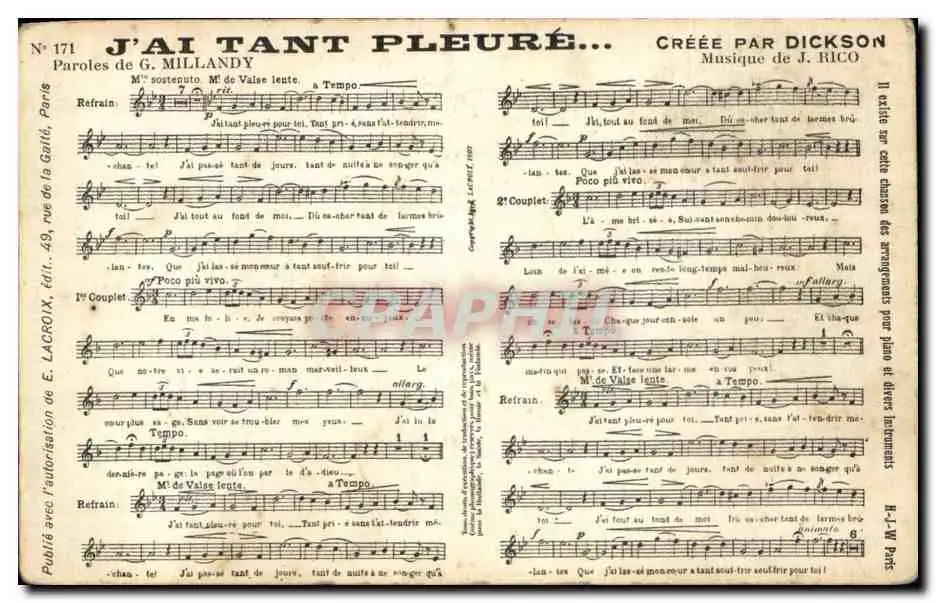 Cartes postales Jai Tant Pleure Cree Par Dickson