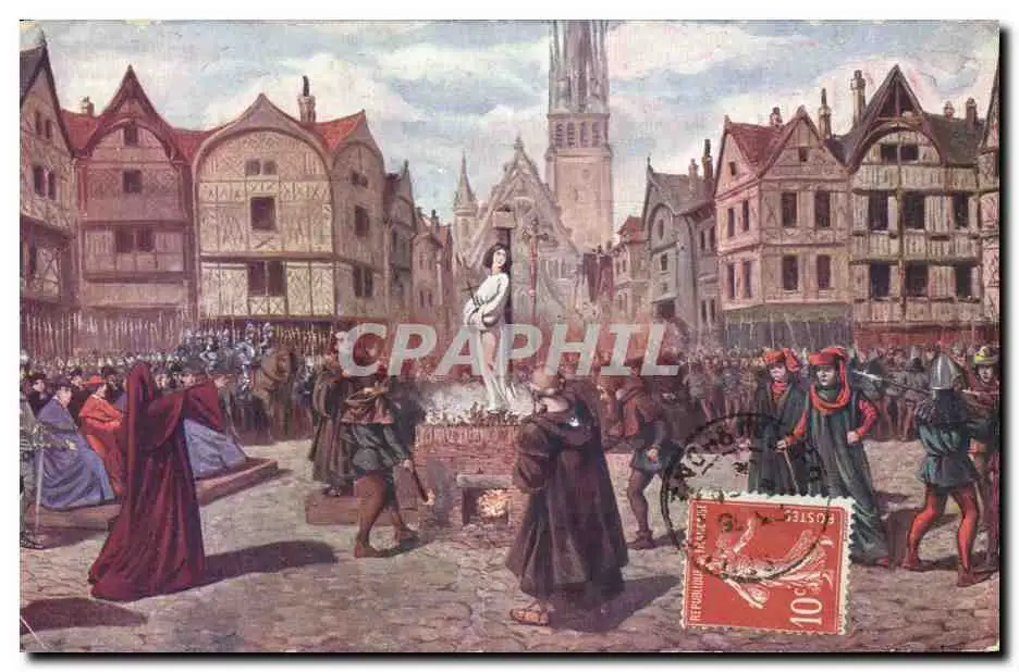 Cartes postales Jeanne d&#39Arc Jeanne agee seulement de 19 ans est brulee sur la place du Vieux Marche a Rouen