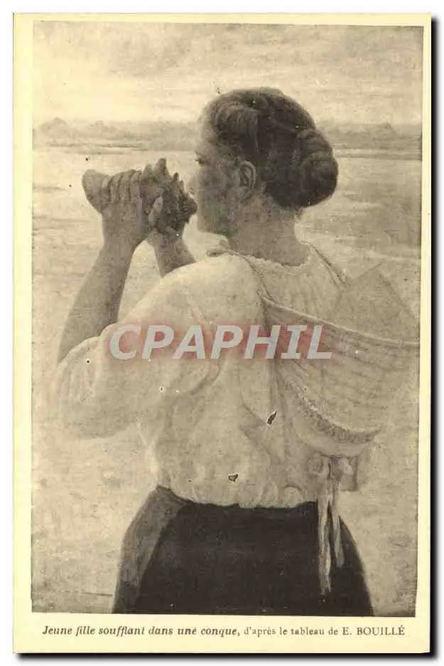 Cartes postales Jeune fille soufflant dans une conque d&#39apres le tableau de Bouille