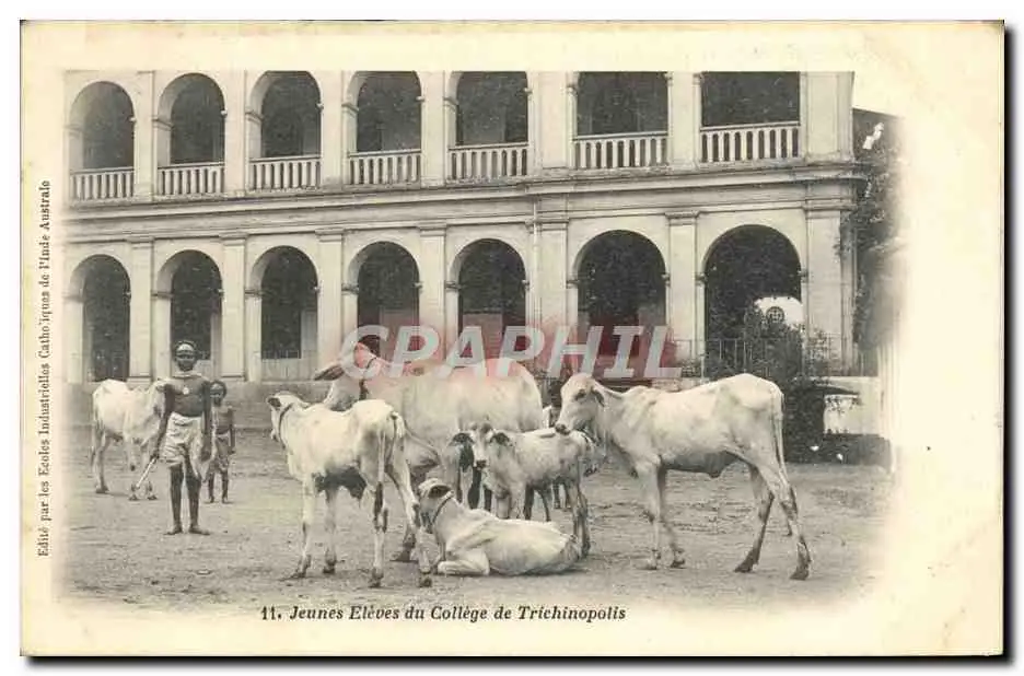 Cartes postales Jeunes Eleves du College de Trichinopolis Boeufs Vaches Inde