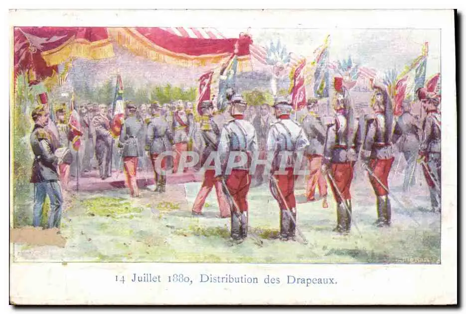 Cartes postales Juilet Distribution des Drapeaux Militaria Dragons