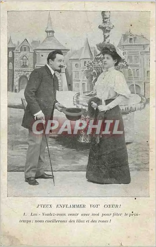 Cartes postales J'veux Enflammer vot Coeur Lui Voulez vous venir avec moi pour feter le Printemps