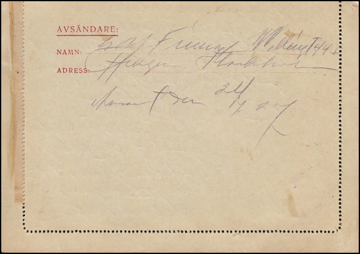 Cartes postales K 27IW KORTBREV 15 Öre, Bahnpost PKP 63 - 21.7.1927 vers Göteborg