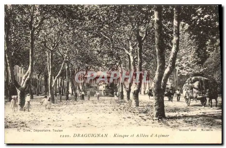 Cartes postales Kiosque et allees d&#39Azemar Draguignan Attelages Porte Faix (animee)