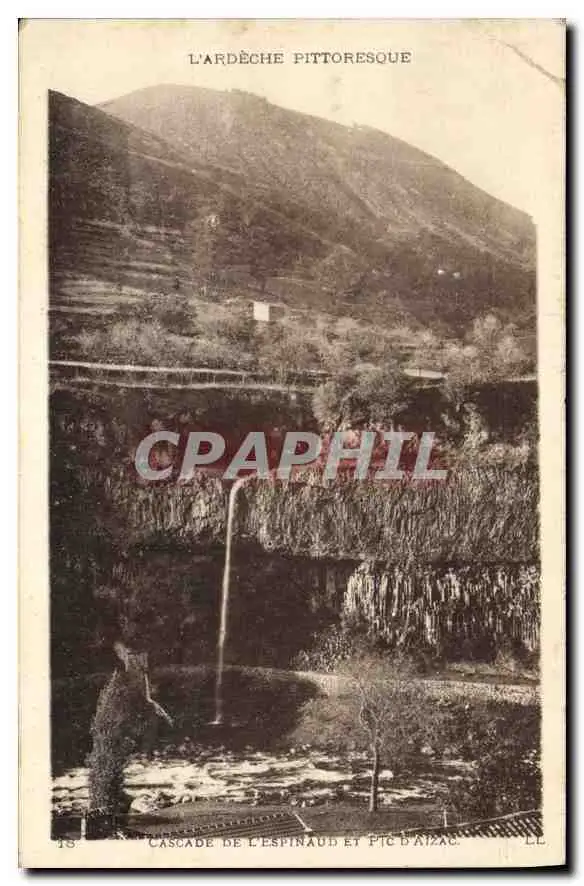 Cartes postales L'Ardeche Pittoresque Cascade de L'Espinaud et Pic d'Aizac