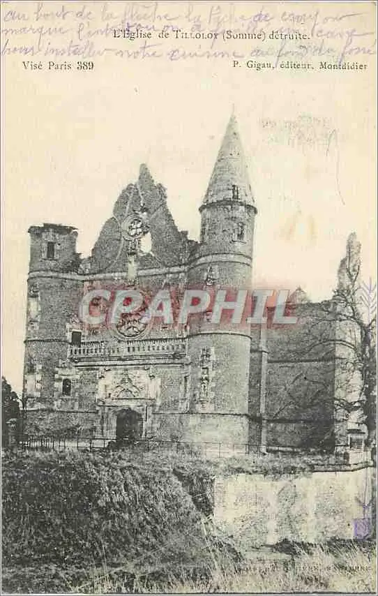 Cartes postales L'Eglise de Tilloloy (Somme) Detruite Militaria
