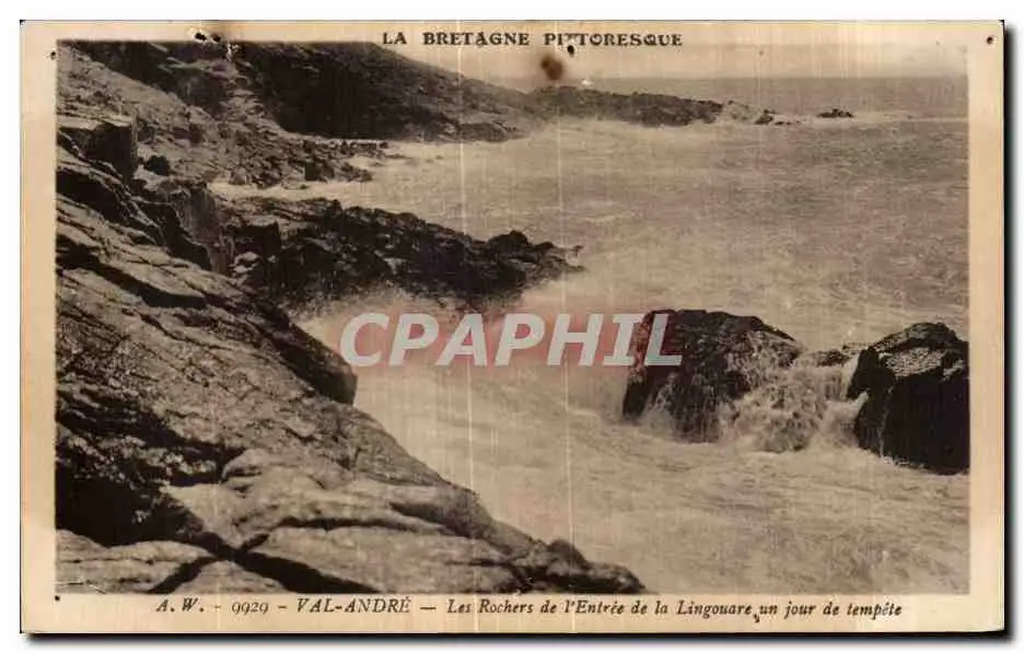 Cartes postales La Bretagne Pittoresque Val Andre Les Rochers de I Entree de la Lingouare un jour de tempite
