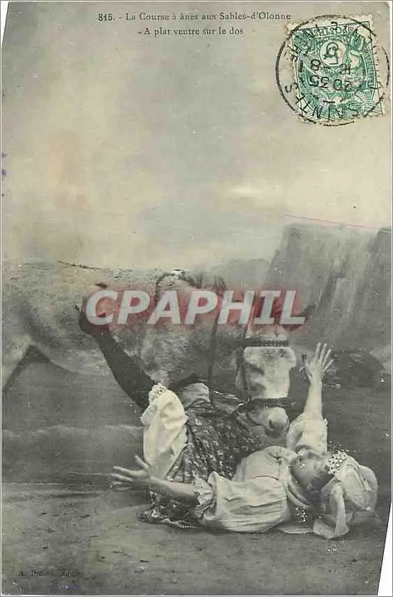 Cartes postales La Course a Anes aux Sables d'Olonne A Plat vantre sur le Dos Donkey
