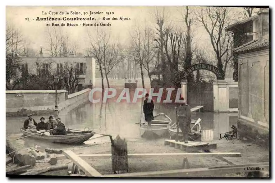 Cartes postales La Crue de la Seine 30 Janvier 1910 Asneieves Courbevoie Rue des Ajoux et Rue de Becon Poste de