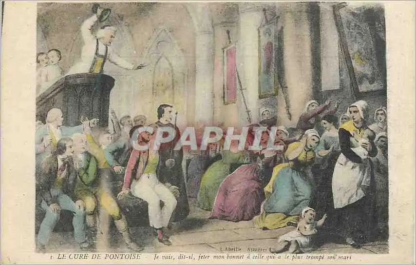 Cartes postales La Cure de Pontoise Je vais dit il Jeter mon Bonnet a Celle qui a le plus trompe son Mari