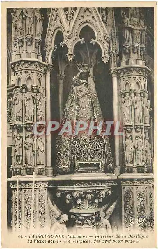 Cartes postales La Delivrande (Calvados) Interieur de la Basilique La Vierge Noire A ses pieds J'ai prie pour vo