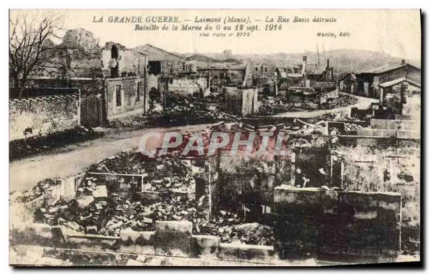 Cartes postales La Grande Guerre Laimont Mense La Rue Basse desruite