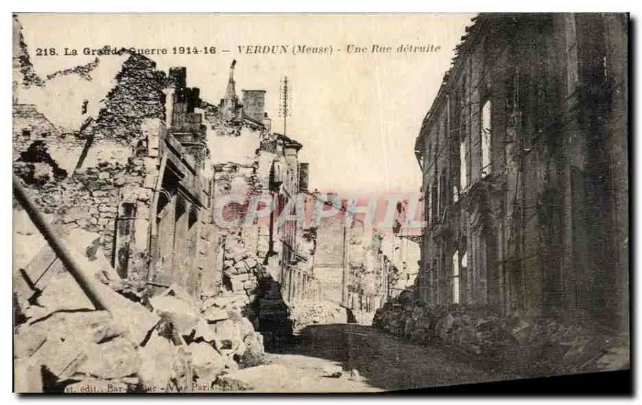 Cartes postales La Grande Guerre Verdun Une Rue detruite Militaria