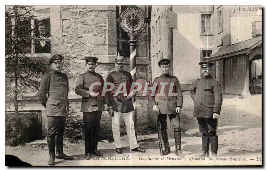 Cartes postales La Schlucht Gendrame et Douaniers allemands au poteau frontiere