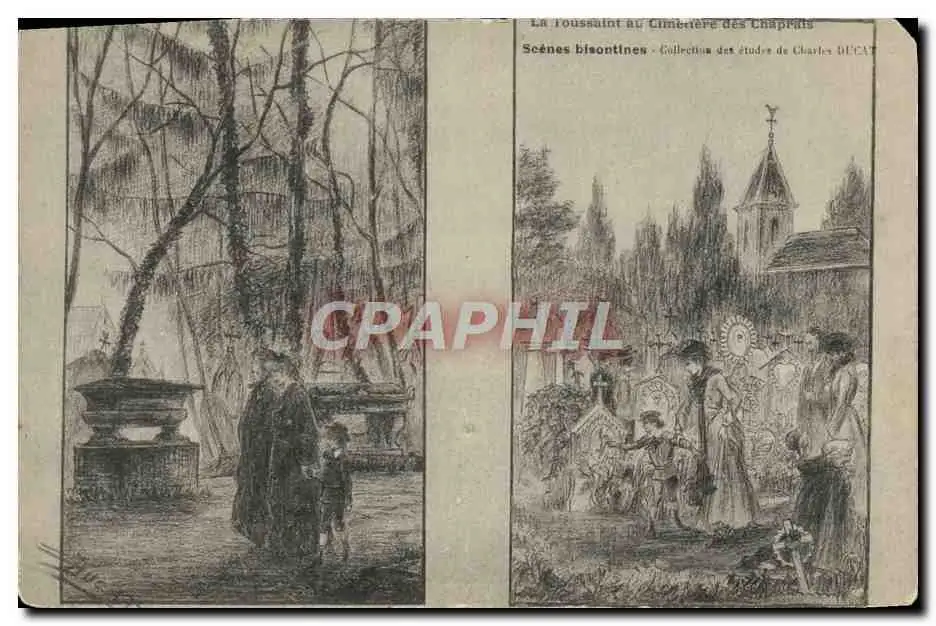 Cartes postales La Toussaint au cimetiere des Chaprais Scenes bisontines