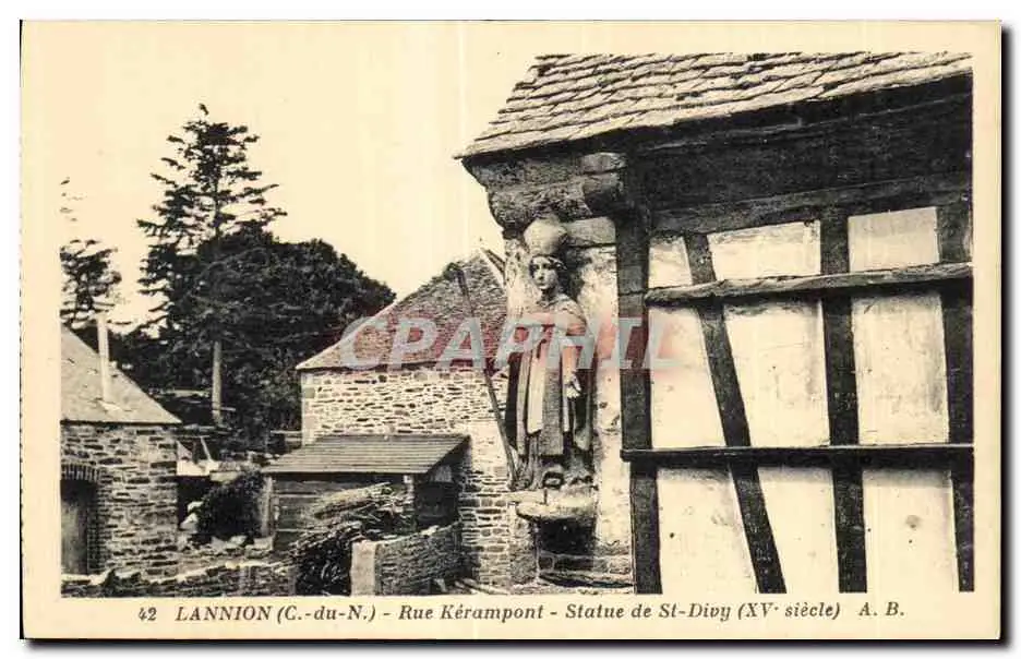 Cartes postales Lannion Rue Kerampont Statue de St Divy