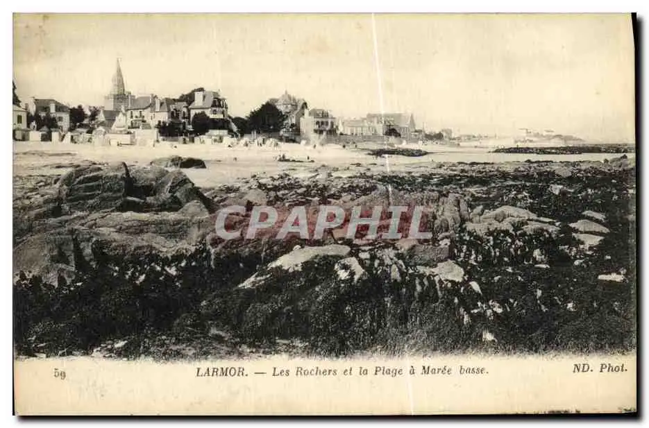 Cartes postales Larmor Les Rochers et la Plage a Maree basse
