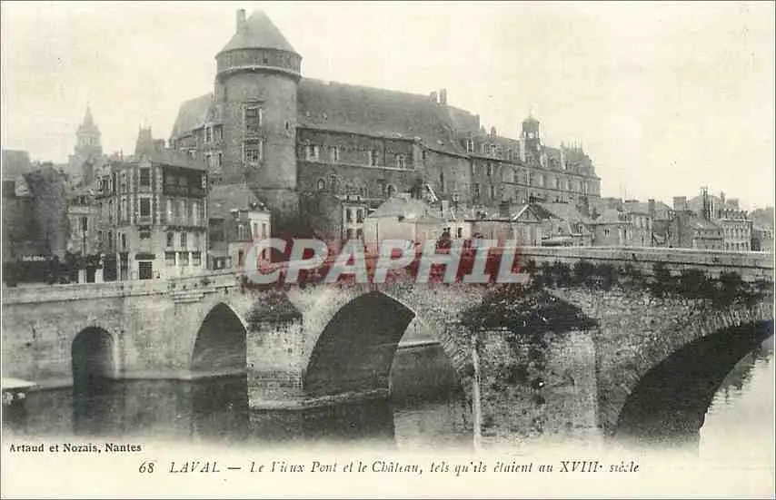 Cartes postales Laval Le Vieux Pont et le Chateau tels qu'ils etaient au XVIIIe siecle