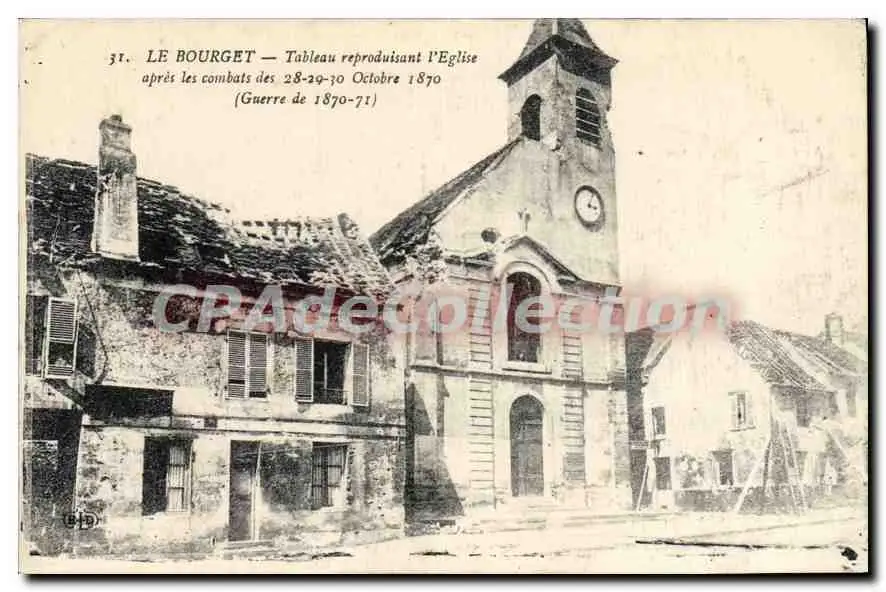 CPA Le Bourget Tableau Reproduisant I'Eglise Apr�s Les Combats des 28-29-30 octobre 1870