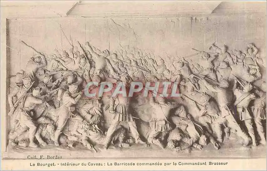 Cartes postales Le Bourget interieur du caveau la barricade commandee par le commandant Brasseur Militaria