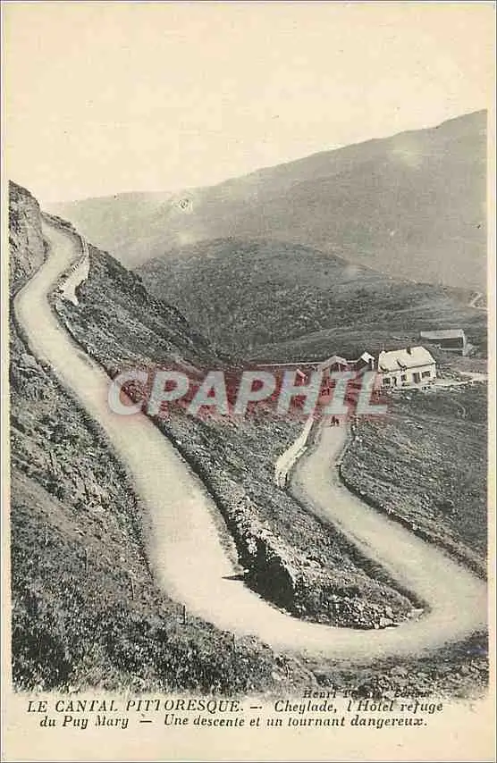 Cartes postales Le Cantal Pittoresque Cheylade l'Hotel Refuge du Puy Mary Une Descente et un Tournant Dangereux