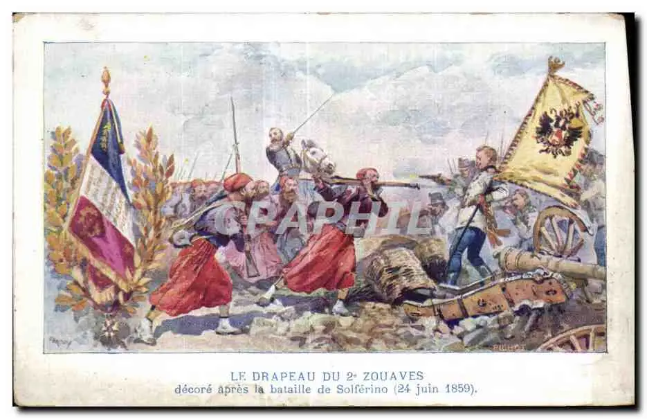 Cartes postales Le Drapeau Du 2e Zouaves decore apres la bataille de Solferino 24 juin 1859