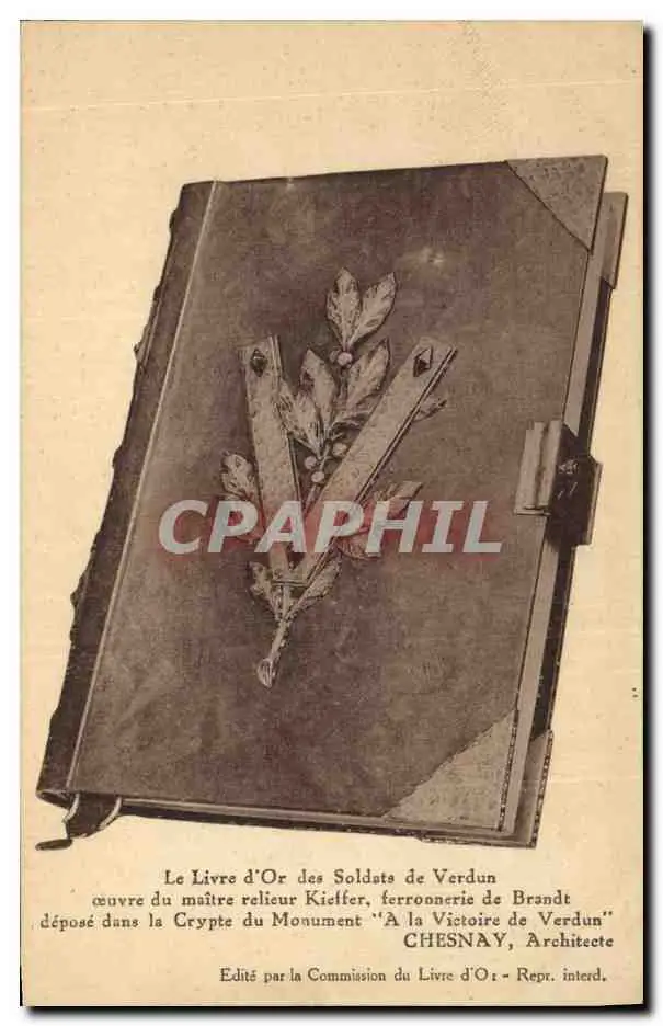 Cartes postales Le Livre d&#39Or des soldats de Verdun Maitre relieur Kieffer ferronerie de Brandt