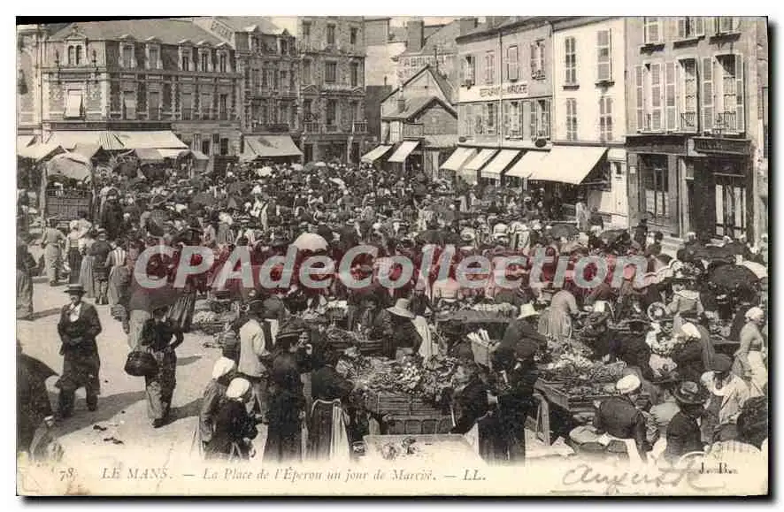 Cartes postales Le Mans La place de l'Eperon un jour de march�