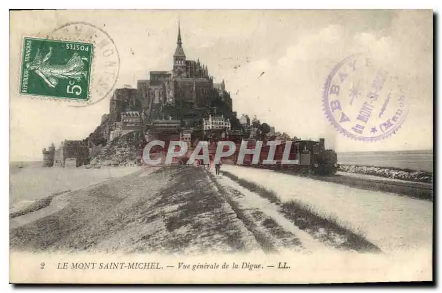 Cartes postales Le Mont Saint Michel Vue generale de la Digue Train
