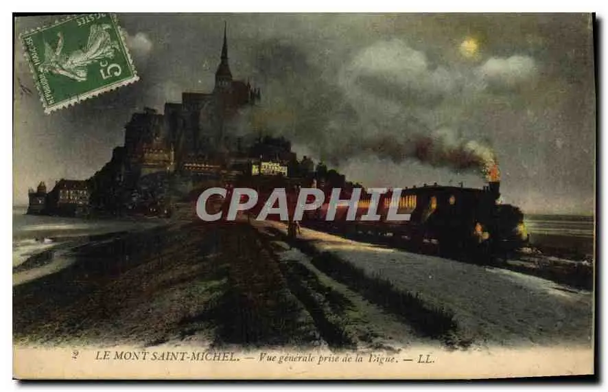 Cartes postales Le Mont Saint Michel Vue generale prise de la Digue Train
