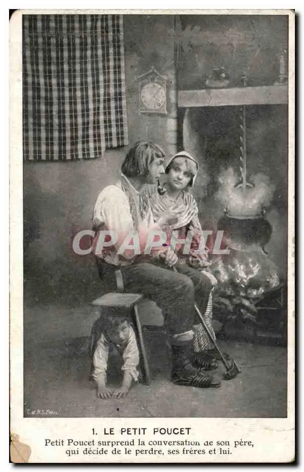 Cartes postales Le Petit Poucet Petit Poucet surprend la conversation de son pere qui decide de la perdre ses fr