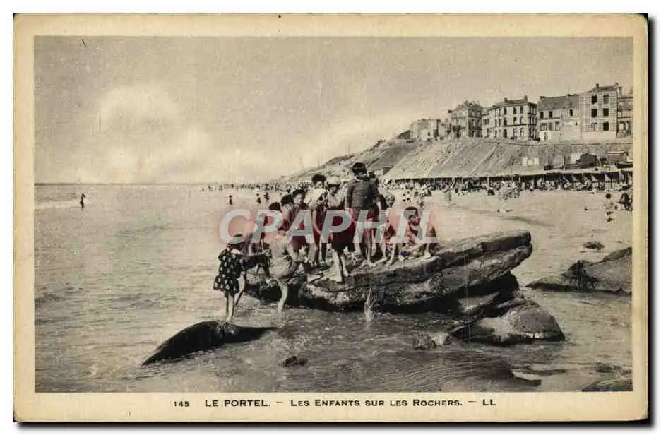 Cartes postales Le Portel Les Enfants Sur Les Rochers