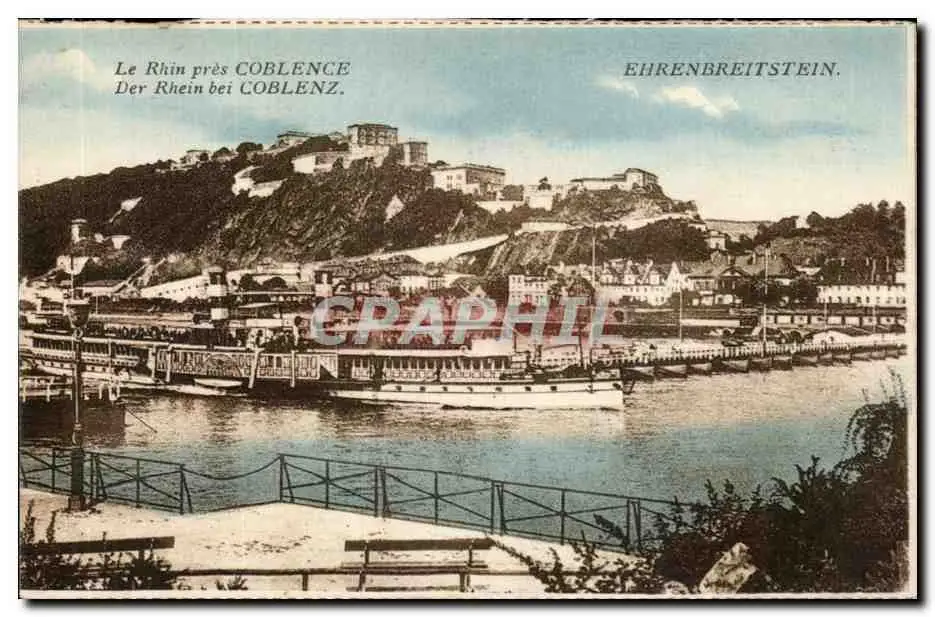 Cartes postales Le Rhin pres Coblence Der Rhein bei Coblenz Ehernbreitstein Bateaux