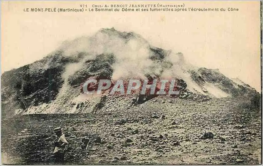 Cartes postales Le mont pele (martinique) le sommet du dome et ses fumerolies apres l'ecroulement du cone