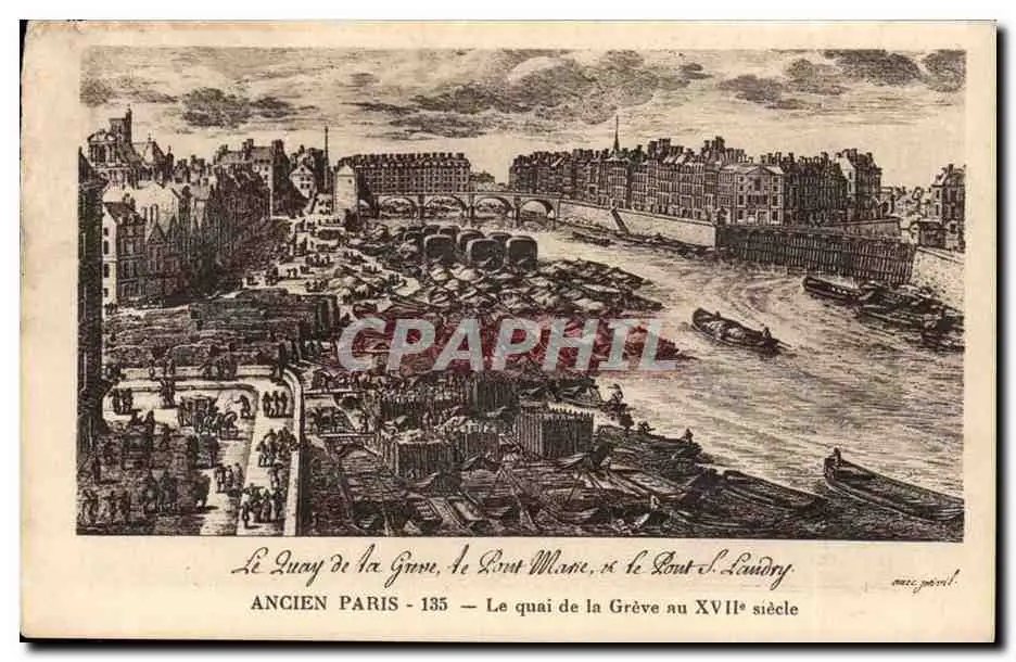 Cartes postales Le quai de la greve le pont Marie et le pont de Landry Ancien Paris au 18eme