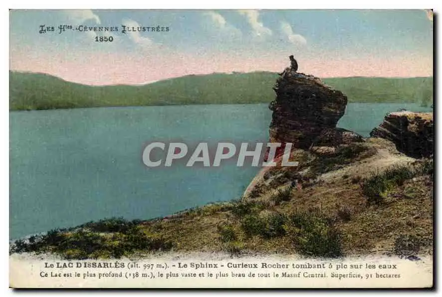 Cartes postales Les Htes Cevennes Illustree Lac d'Issarles Le Sphinx Curieux Rocher tombans a pic sur les eaux