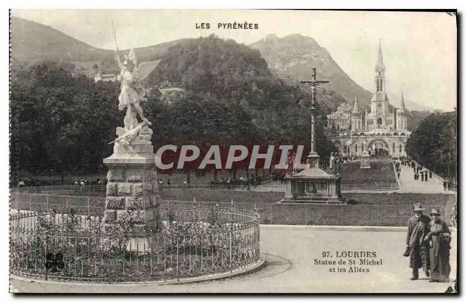 Cartes postales Les Pyrenees Lourdes Statue de St Michel et les Allees