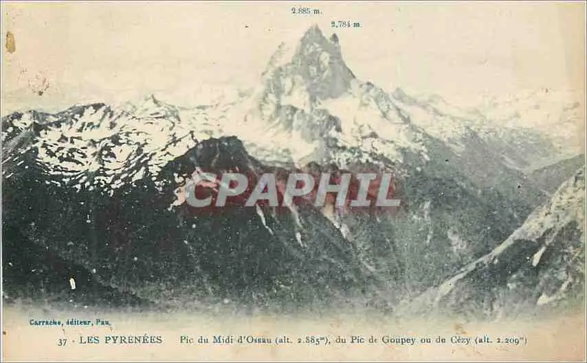 Cartes postales Les Pyrenees Pic du Midi d'Ossau (alt 2885 m) du Pic de Goupey ou de Cezy (alt 2209 m)