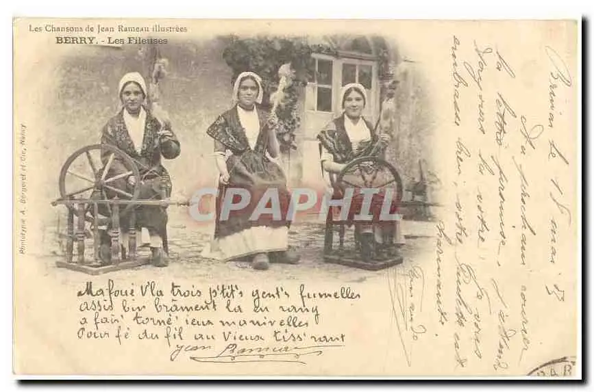 Cartes postales Les chansons de Jean Rameau illustrees Les fileuses (folklore metiers artisanat)
