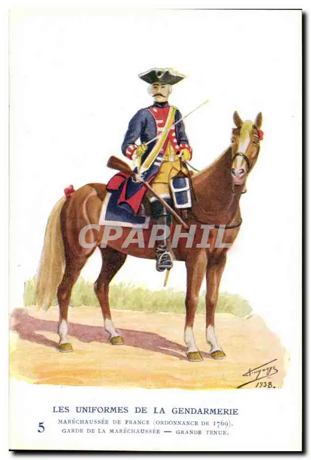 Cartes postales Les uniformes de la gendarmerie MArechausee Garde Grande tenue 1769 Cheval Metiers