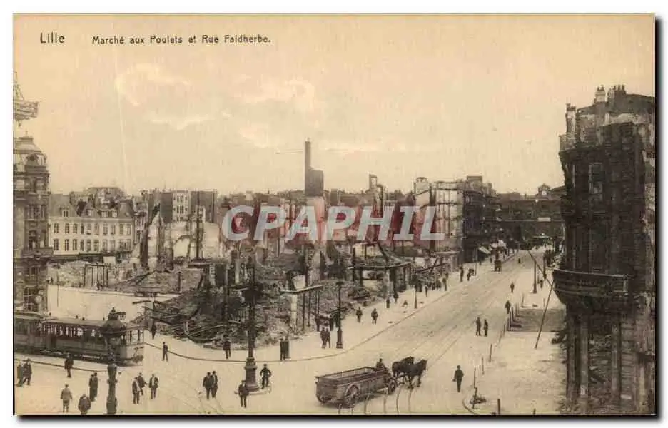 Cartes postales Lille Marche aux poulets et Rue Faidherbe Militaria