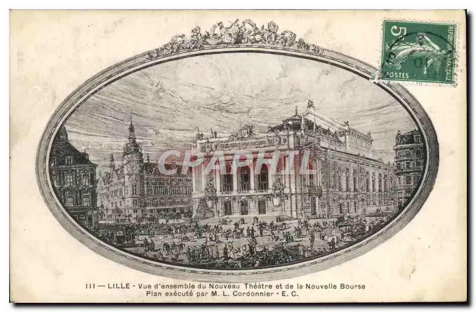 Cartes postales Lille Vue d'ensemble du nouveau Theatre et de la nouvelle Bourse Cordonier
