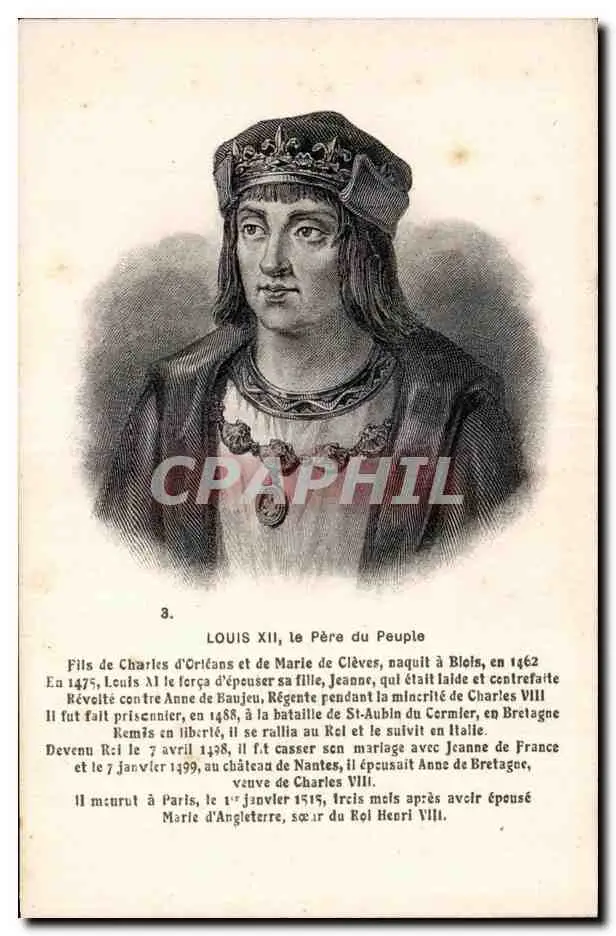 Cartes postales Louis XII le pere du peuple Fils de Charles d orleans et de Marie de Cleves naquit a Bleis en en