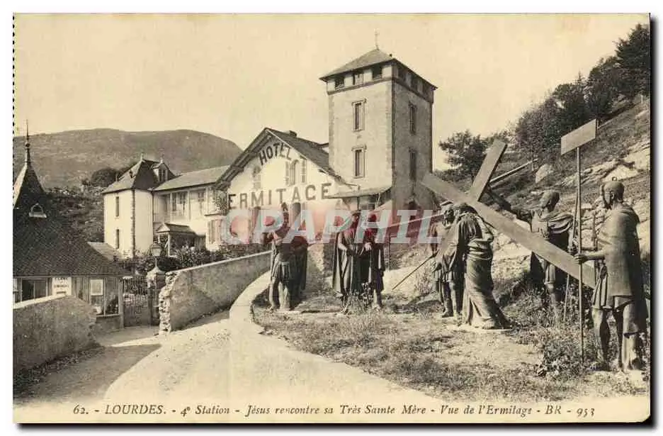 Cartes postales Lourdes 4eme Station Jesus rencontre sa Tres Sainte Mere Vue de l Ermitage