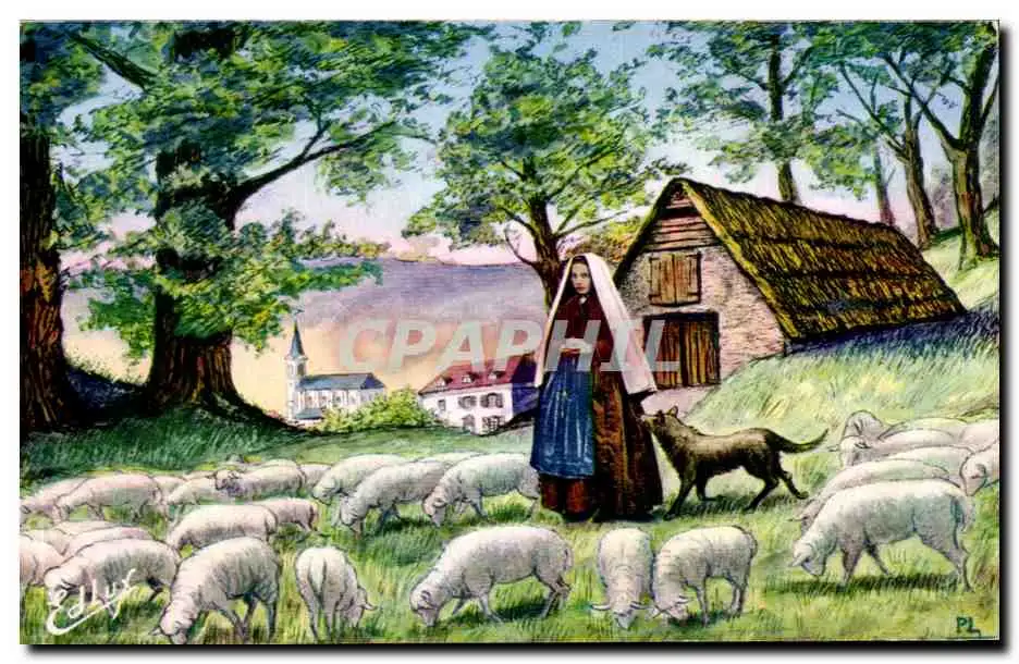 Cartes postales Lourdes Bernadette A Bartree Gardant Les Moutons Bernadette In Bartree Keeping the