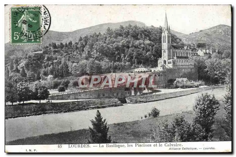 Cartes postales Lourdes La Basilique Les Piscines Et Le Calvaire