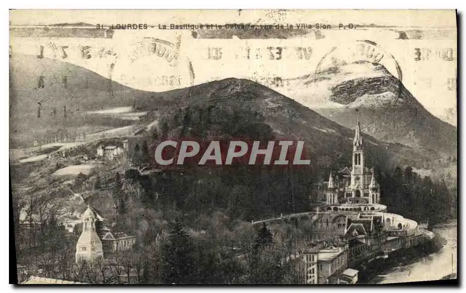 Cartes postales Lourdes La Basilique et le calvaire vue de la villa Sion