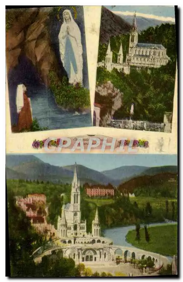 Cartes postales Lourdes La Basilique et l&#39apparition